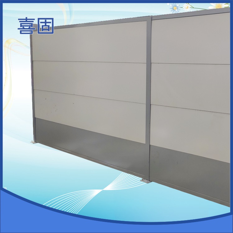 其寬度普通為950mm;長(zhǎng)度隨圍擋的高度而定,假設(shè)圍擋高度是2米,那彩鋼板高度接近2米。施工活動(dòng)圍擋采用50mm厚外白內(nèi)藍(lán)輕質(zhì)雙層夾心彩鋼板,高度2.0m,立柱邊長(zhǎng)800mm,高2m的方形鋼管,鋼管壁厚1.2mm.圍擋頂部底部橫梁采用C型鍍鋅壓槽。